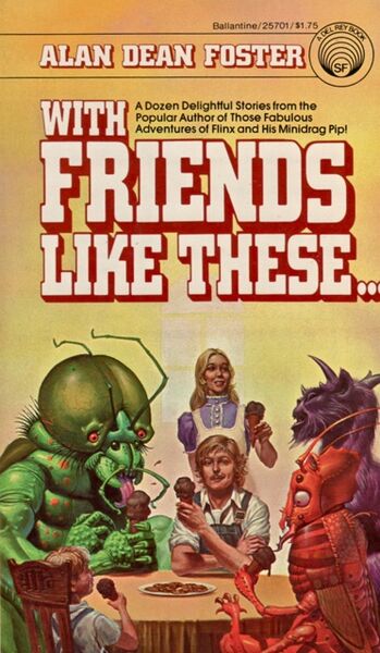 With Friends Like These… wasn’t Alan Dean Foster’s first collection. Very early in his career he began doing novelizations (many novelizations2) and by the end of 1977, he had already written no less than nine Star Trek Logs, based on the animated Star Trek scripts. I do think that this book was his first collection of non-tie-in works; the stories in it are among his first published stories.
