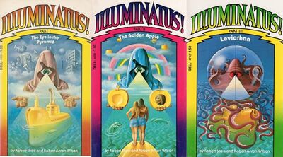 Three 1975 novels (The Eye in the Pyramid, The Golden Apple, and Leviathan) together comprise Robert Shea and Robert Anton Wilson’s Illuminatus Trilogy.