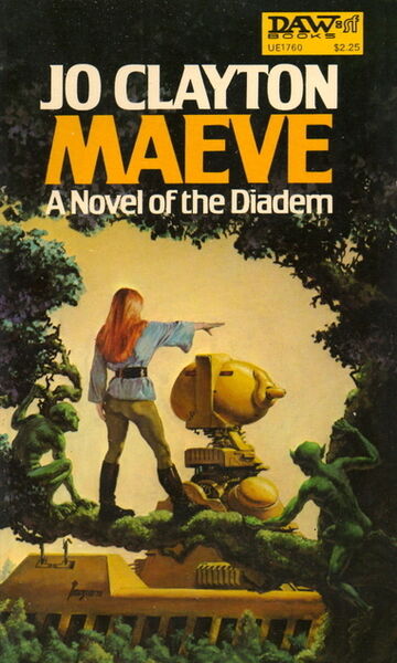 1979’s Maeve is the fourth book in Jo Clayton’s Diadem series; it’s the second book in which lead character Aleytys gets to wear clothes on the cover.