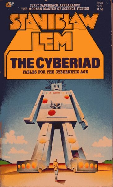 Stanislaw Lem’s 1965 The Cyberiad: Fables for the Cybernetic Age is a collection of humorous science fiction stories. The 1974 English translation is by Michael Kandel. My 1976 Avon paperback has illustrations by Daniel Mróz; I cannot tell if this is true of other editions.