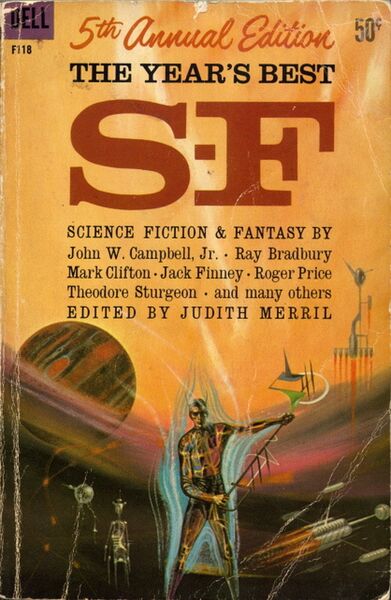 1960’s The Year’s Best S‑F: 5th Annual Edition (also published as The 5th Annual of the Year’s Best S‑F and as The Best of Sci-Fi 5) is the fifth volume in Judith Merril’s The Year’s Best SF anthology series. This volume draws on science fiction published in 1959 and 1960.