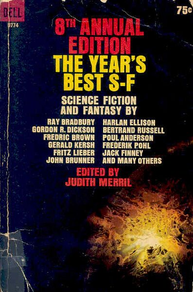 Judith Merril’s 1963 8th Annual Edition: The Year’s Best S‑F is the 8th volume of Merril’s Year’s Best S‑F anthology series. Variant titles include The 8th Annual of the Year’s Best S‑F and The Best of Sci-Fi No. 4. Stories were selected from those published in 1961 and 1962.