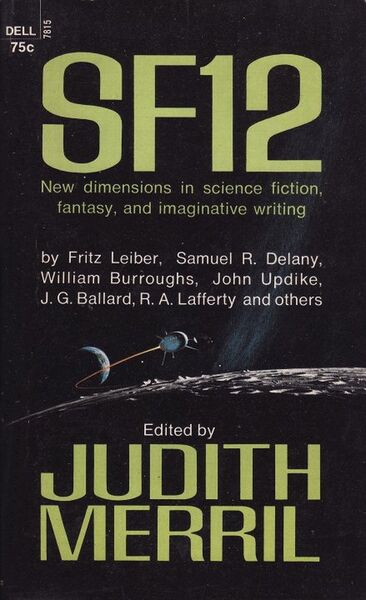 SF 12 is the 12th and final1 volume in Judith Merril’s The Year’s Best S‑F anthology series. It was first published in 1968. A slightly shorter version appeared as The Best of Sci-Fi 12. My Dell edition does not proclaim itself a Best SF anthology. It also makes no pretense of limiting itself to the previous year.