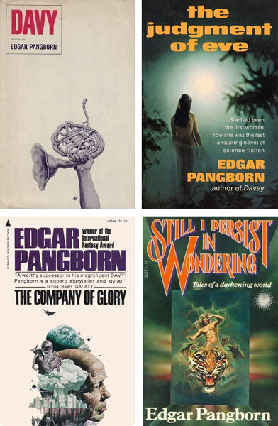 This demonstrates a pitfall the preferred length of modern SF generally skirts. I began intended just to reread Edgar Pangborn’s post-holocaust Bildungsroman Davy but because I was also planning to reread Canticle for Leibowitz, which covers centuries to Davy’s decades I then began to ponder if it would be better to reread all the stories Pangborn wrote in that setting so I would be comparing similar spans of time or at least half a millennium to 1800 years. After all, both The Company of Glory and The Judgment of Eve are short and the collection Still I Persist in Wondering is under 300 pages. Of course, it all added up to something as long as The Past Through Tomorrow or Adventures in Time and Space. I am sure there is a lesson here somewhere and equally sure that I didn’t learn it.