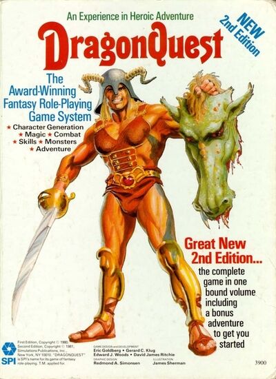 Simulation Publications, Inc.’s 1980 roleplaying game DragonQuest (DQ for short) is the third game in the trifecta of RPGs on which I imprinted some thirty-eight years ago. Principle designers were Eric Goldberg, Gerard C. Klug, David James Ritchie, Edward J. Woods, and Redmond A. Simonsen.